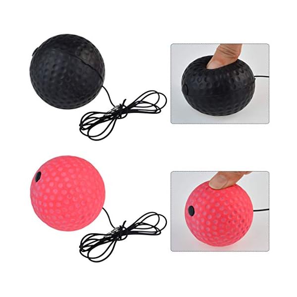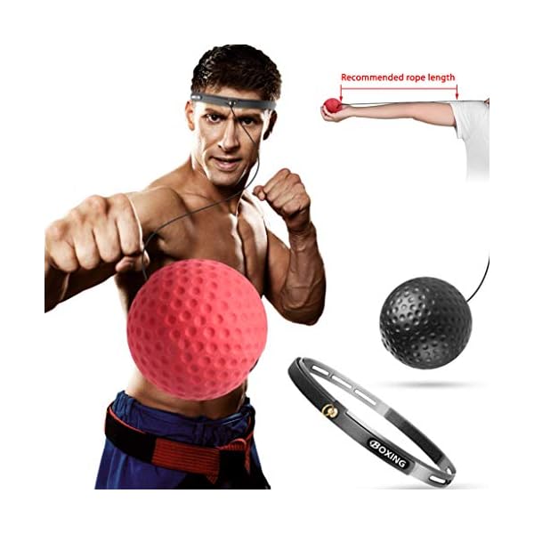 APTO PARA TODOS: La pelota de boxeo reflex es adecuada para jóvenes, ancianos y niños. Ya sea que estés de pie o sentado, puedes usarlo. La longitud de la banda de silicona es fácilmente ajustable según el tamaño de la cabeza.