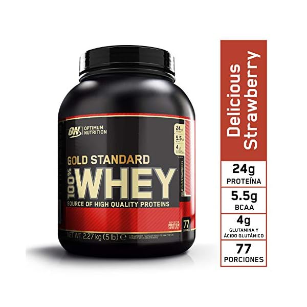 Optimum Nutrition Gold Standard 100% Whey Proteína en Polvo, Glutamina y Aminoácidos Naturales, BCAA, Fresa Deliciosa…