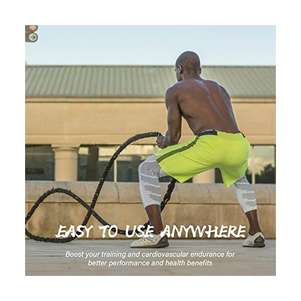 ✅ Mango Cómodo – Nuestra cuerda de batalla tiene extremos con tratamiento de contracción térmica de alta calidad, perfecto para entrenamiento de fuerza de empuñadora y fuerza de las manos, también puede ayudarle a tener un mejor capacidad de agarre a la tierra cuando practica.