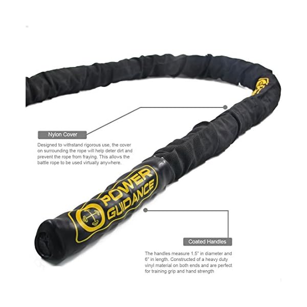 ✅ Cubierta Protectora de Nylon – POWER GUIDANCE Cuerda de batalla totalmente cubierta con material de nylon para protegerla del desgaste y ser más duradera, y se puede utilizar durantes muchos años.