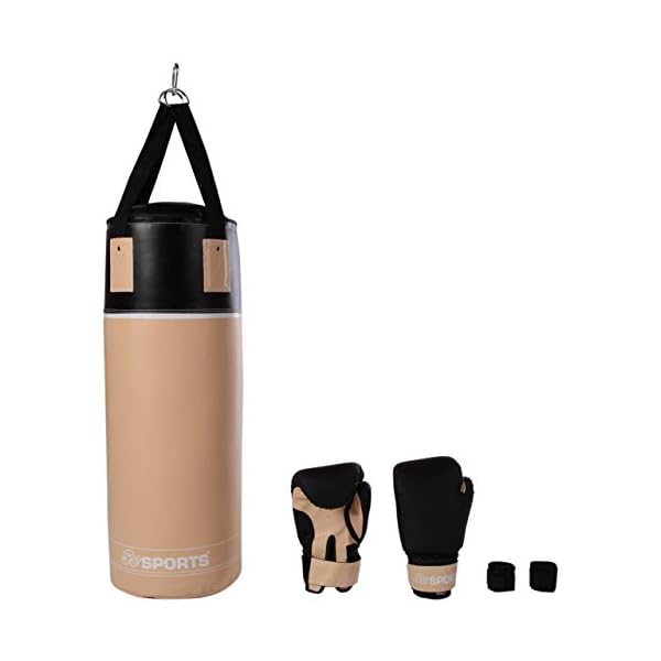 Set compuesto de boxeo con correa de nailon, saco de boxeo, vendas y pack el set, se compone de boxeo, boxeo, vendas y bolsa bolsa, mejor y más segura condiciones de entrenamiento, le ofrece para mejorar su gimnasio, durabilidad y la agilidad de a – o simplemente veces de vapor abzulassen. el relleno de tela de algodón de restos se distribuye de manera uniforme en el saco de boxeo y protege el material también en impactos intensos.. para hacer el saco de boxeo aún resistente, se ha mucho énfasis en una alta calidad limpia y segura todas las costuras son extra resistente y especialmente reforzado costuras. la correas de nailon para colgar los se además asegurados por remaches. anillos de acero y mosquetón estables para un montaje rápido y fácil, pero seguro, con este están generosamente acolchado Guantes de boxeo, en el tamaño 10 oz. para una mayor protección de la manoArticulaciones garantizar vendas de algodón. un vistazo: 1 x saco de boxeo 100% de cloruro de polivinilo (PVC) + textilfül Lung 100% de algodón, 1 x par de guantes de boxeo 100% Poliuretano, Acolchado con espuma de 70% cm. + 30% de espuma de poliuretano 1 x par de vendas de algodón 100% 1 x bolsa bolsa con correa de poliéster 100%. Datos técnicos Saco de boxeo: Peso: 12 kg Medidas: 70 cm de alto, 25 cm de diámetro Color: Beige, Negro Suspensión: anillas con remaches Nylon Correas + acero + Mosquetón Boxeo datos técnicos: Tamaño: 10 oz (contorno de la mano sin pulgar 16,5 – 20 cm), color: Beige, Negro Cierre: Cierre de velcro acolchado de espuma + Costuras reforzadas + Características: Pulgar fijación + Orificios de ventilación