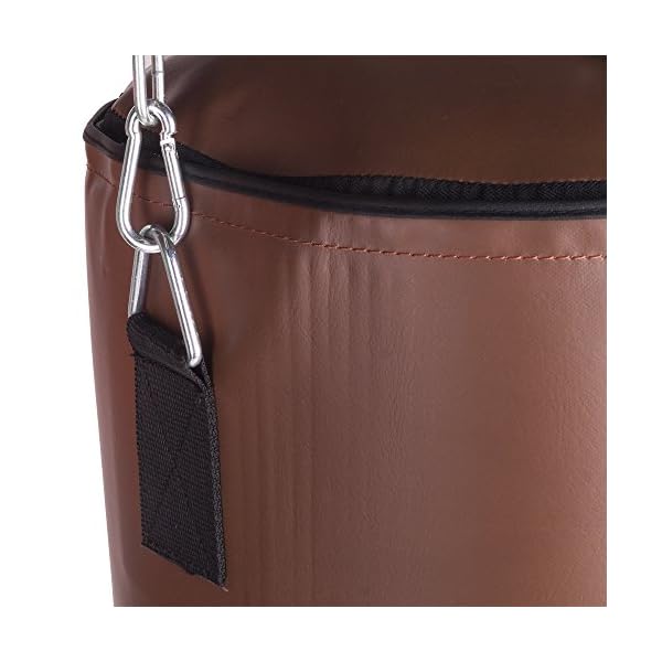 Este saco de arena viene con una cadena de acero de cinco puntos y está diseñado para entrenamiento físico, desarrolla su resistencia y su coordinación. Es muy fácil y rápido de usar, toda la cadena de suspensión deberá estar asegurado con un gancho de seguridad .La fuerza de carga de la cadena de acero es 180 kg y las costuras doble-cosidas llevar a 4 cadenas con un broche a la suspensión de 5 puntos. El cojinete giratorio en la parte superior de suspensión hace el saco de arena flexible. El saco de arena se rellena y se cierra con una cremallera. Está hecho de vinilo resistente y tiene una gran durabilidad. Se puede tomar casi todo, desde el golpe de fuertes, retrocesos de la pierna hasta el entrenamiento con armas contundentes. La bolsa es de 120 cm de largo y 35 cm de ancho y pesa alrededor de 5 kg. ¿Sabías que el entrenamiento del boxeo en conjunción con patadas a las piernas es ideal para quemar calorías?Asegúrese de prestar siempre atención para hacer el mismo movimiento, por ejemplo patadas en las piernas. Para ello, cada vez con mayor precisión y velocidad. Su cuerpo requiere una gran cantidad de energía y, por lo tanto, consume una enorme cantidad de calorías. Boxeo y patadas en las piernas aumentan la movilidad de todo el cuerpo, en particular, de las articulaciones y de la región de la cadera o la pierna. Que aún no es suficiente, su cuerpo libera endorfinas (hormonas de la felicidad) durante el ejercicio. Usted se sentirá más segura de sí misma.