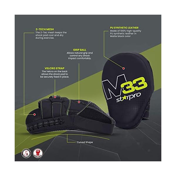 Starpro M33 Manoplas Boxeo curvadas de Cuero sintético Mate – Almohadillas para Entrenamiento de Boxeo MMA Kickboxing…