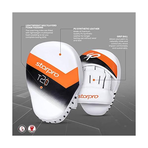 Starpro T20 Manoplas Boxeo curvadas de Cuero sintético – Almohadillas para Entrenamiento de Boxeo MMA Kickboxing Artes…
